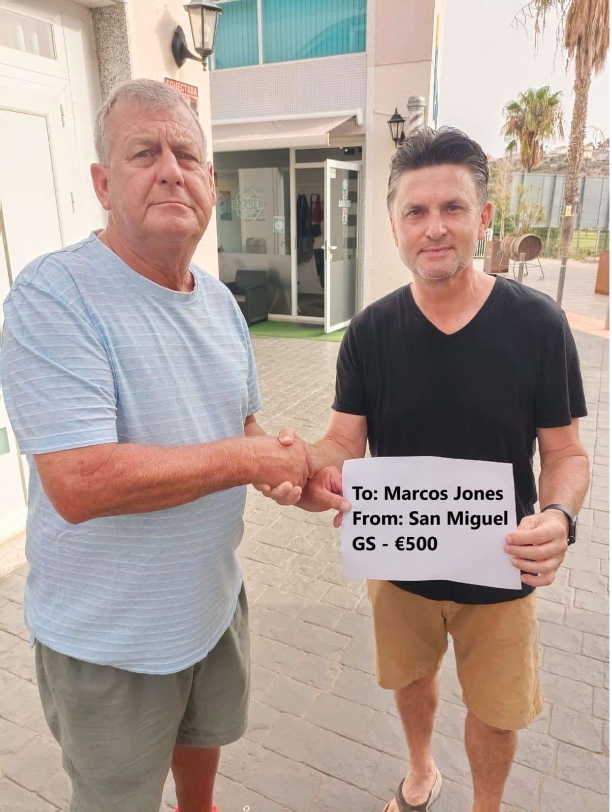 Stowarzyszenie przekazało darowiznę w wysokości 500 euro Darrenowi Jonesowi „Darren the Barber” z Quesady (na zdjęciu poniżej), ojcu Marcosa Jonesa, o którym wspominaliśmy w zeszłym tygodniu, a który niedawno miał straszny wypadek samochodowy, w wyniku którego odniósł obrażenia zmieniające jego życie.