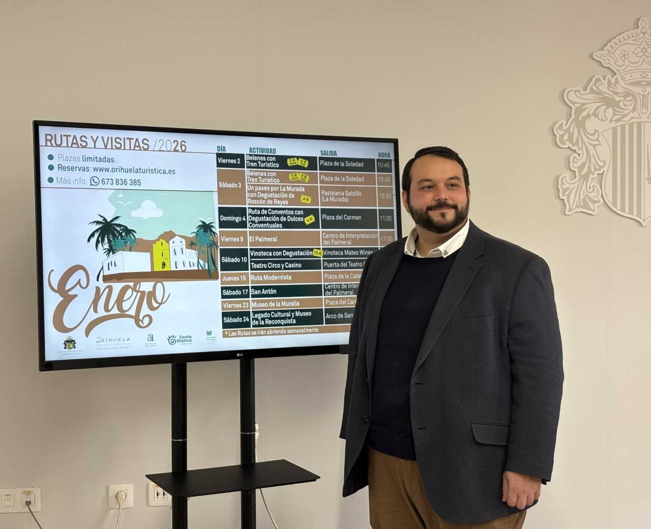 Jednocześnie trasa przez dzielnicę La Murada połączy dziedzictwo i tradycję z degustacją Roscon de Reyes, w towarzystwie czekoladowych lub ziołowych naparów. Wizyta będzie kontynuowana w centrum miasta, kościele i pomniku upamiętniającym setną rocznicę otwarcia systemu irygacyjnego przez króla Alfonsa XIII. Wycieczka będzie prowadzona z udziałem ekspertów.